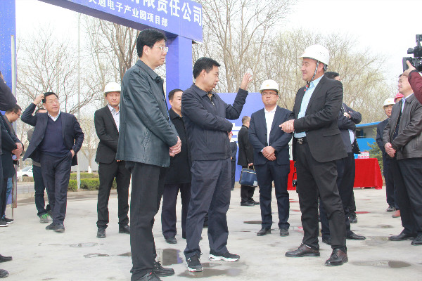 2019年3月27日下午,平?jīng)鍪形睍?、市長王奮彥、市委常委、崆峒區(qū)委書記陳鐸、市政府秘書長薛曉宏等市委領(lǐng)導(dǎo)及平?jīng)鍪泄I(yè)園區(qū)管委會主任馬春寧等園區(qū)主要領(lǐng)導(dǎo)一行人蒞臨甘肅振興·天通電子(物流)產(chǎn)業(yè)園項目施工現(xiàn)場指導(dǎo)工作。